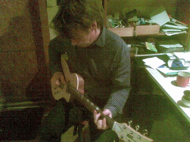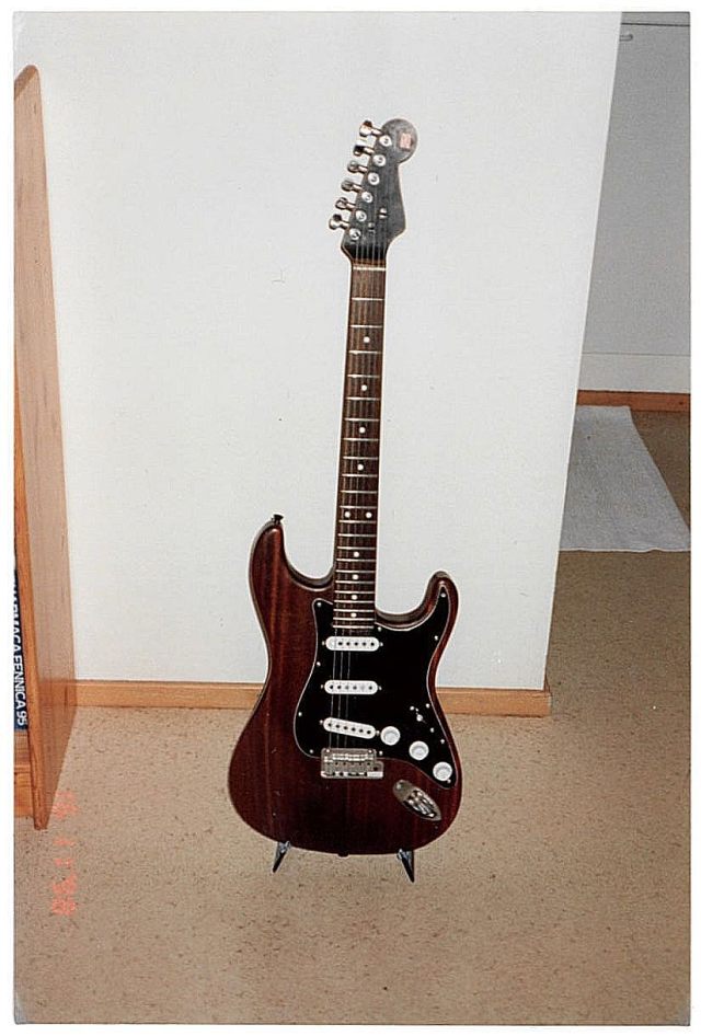 Ilkalla on hieman aikaa testailla kotimaista käsintehtyä kitaraa.